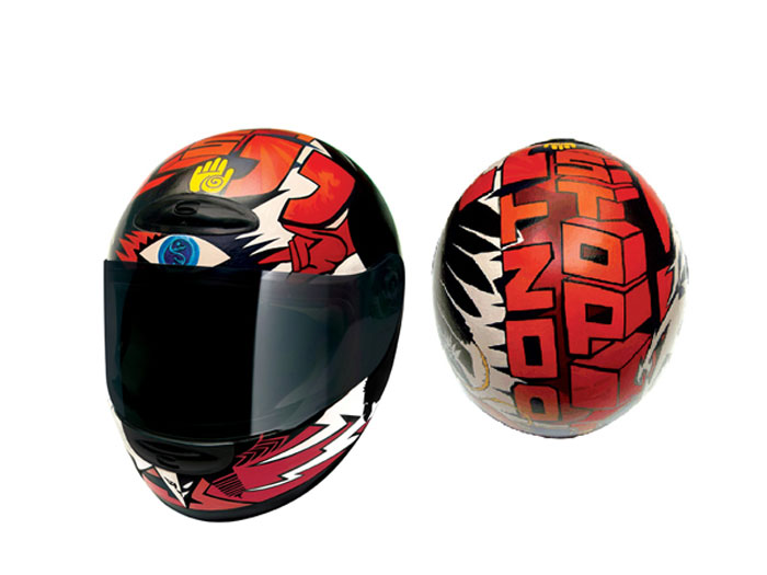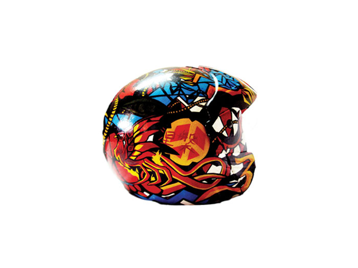 I am an avid motorcyclist but definitely no Hell’s Angel. Illustrating helmets is one of the few steps that made me come back to graphic design. The graphics for each helmet graphic reflect the personal preferences, beliefs and attitudes of each rider. All helmets are hand-painted with enamels. I am constantly working at new designs and you can get yours painted on request.