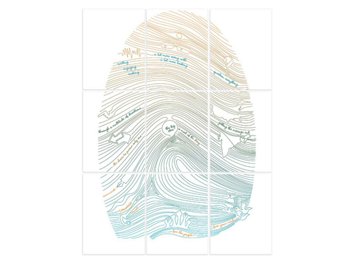 Self promotional postcards cut out of a poster talking about my ideas on branding. The poster cuts up into nine ready-to-mail postcards, each carrying a unique message about branding and corresponds to a related message on the other side (the face of the postcard). The illustration style is very unique and something that I had developed for AT&T while I was working at Interbrand- detailed yet minimal.